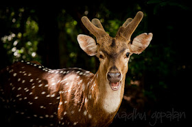 ♥ Yesterday, my father and I visited the IIT campus in Chennai. A part of the Guindy National Park, it is classified as a "tropical dry evergreen forest". It is blessed with an amazingly rich biodiversity and is home to all kinds of exotic animals, plants and migratory birds - we saw black bucks, spotted deer, monkeys, cats, butterflies and some strange insects. I go there often, but never before with my camera since animal/wildlife photography doesn't really interest me - my father wanted to take pictures of the animals on the campus, so I decided to join in. My favourite animals were the deer, take a look :)